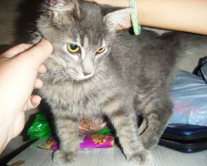 Es una bebé de 3 meses de edad, gris, peluda, muy mimosa.