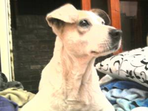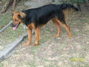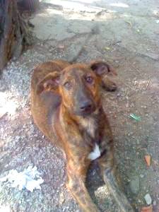 Esta hermosa cachorrona fué rescatada con sarna en Octubre de 2010 de Carrefour Varela, tiene aproximadamente 1 año, es de tamaño mediano, tiene muy buen carácter, es cariñosa, juguetona, le gusta correr, se lleva bien con otros perros y es guardiana. Está en un hogar de tránsito en Florencio Varela a la espera de adoptante responsable, y se lleva al domicilio con contrato de adopción.