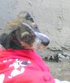 Ella es Peke, así le puse, según vecinos de mi trabajo la tiraron desde un auto. Tiene aproximadamente dos años, es súper bonita, chiquita, todo el tiempo pide mimos y upa!!! Hace un mes aproximadamente que se quedó con mis otros dos hijos del trabajo, pero la diferencia está en que ella no es callejera como los otros dos, no sabe el peligro de la calle, intenta hacer lo que hacen ellos (correr y ladrar a los autos, motos, bicis) y tengo mucho miedo que le pase algo, para colmo es tan pequeñita que ni se la ve cuando se cruza de rueda en rueda.